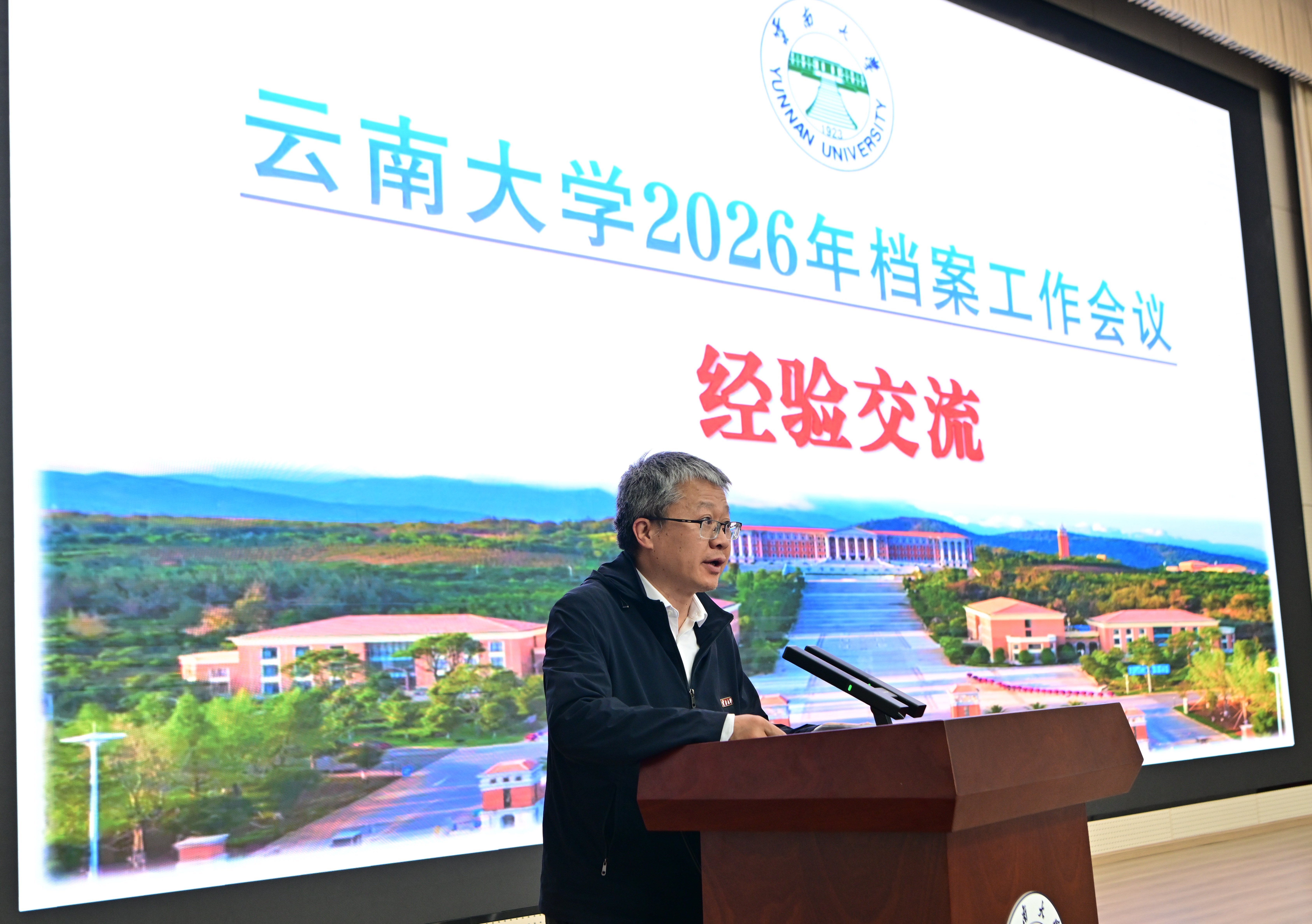 为深入学习贯彻习近平总书记关于档案工作的重要指示批示精神,落实全国档案局长馆长会议、省档案工作会议部署要求,4月15日,云南大学2026年档案工作会议在呈贡校区创新创业学院创客报告厅举行。副校长、学校档案工作管理委员会主任杨绍军,学校档案工作管理委员会成员,各院、各单位、各部门档案工作分管领导、专兼职档案员、档案馆全体人员参加会议。会议由档案馆(校史馆、历史博物馆)馆长张志军主持。